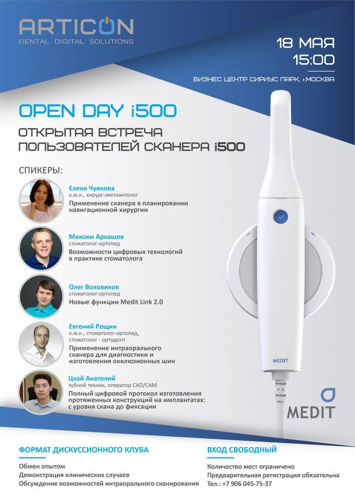 Даст ли сканер хороший результат в случае протяженных ортопедических конструкций? Этот и другие вопросы использования интраорального сканера Medit i500 в мае 2019 в Москве обсудят врач и зубные техники.
